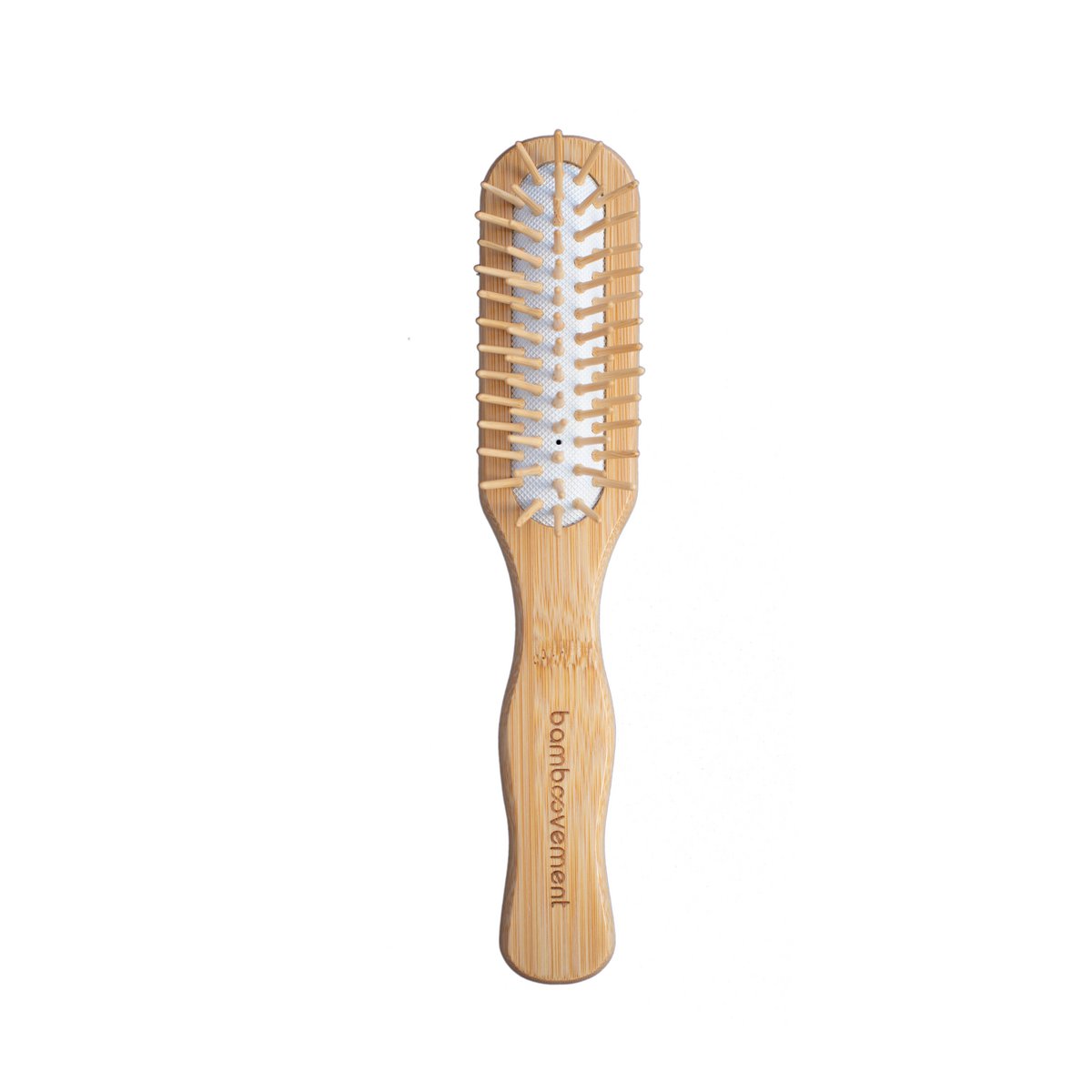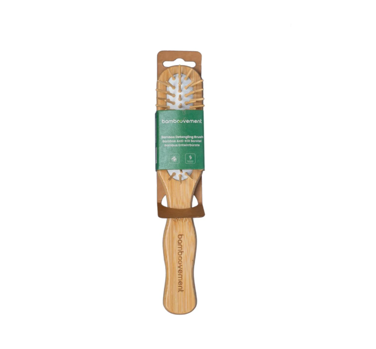 Diese Bambus-Entwirrungsbürste ist eine nachhaltige und vegane Alternative zu herkömmlichen Entwirrungsbürsten. Die Bürste ist vollständig plastikfrei und verwendet Bambus-Stifte anstelle von tierischen Borsten. Das macht sie nicht nur umweltfreundlicher, sondern auch besonders schonend für Ihr Haar.