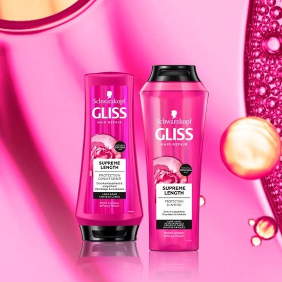 Zorgt voor een perfecte doorkambaarheid. De formule bevat biotine-complex & pioenen. De Supreme Length lijn is speciaal ontwikkeld om de kwaliteit van lang haar te verbeteren & te behouden.